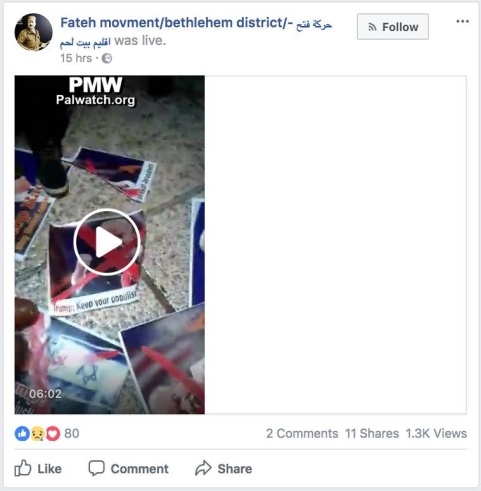 Fatah branch posts video of Arabs defacing pictures of US President Trump