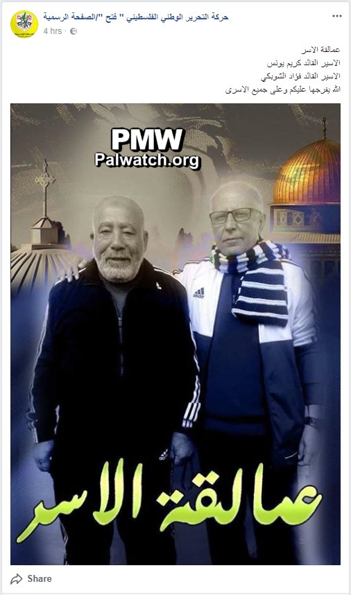 Fatah Facebook glorifies imprisoned terrorists Karim Younes and Fuad Al-Shubaki