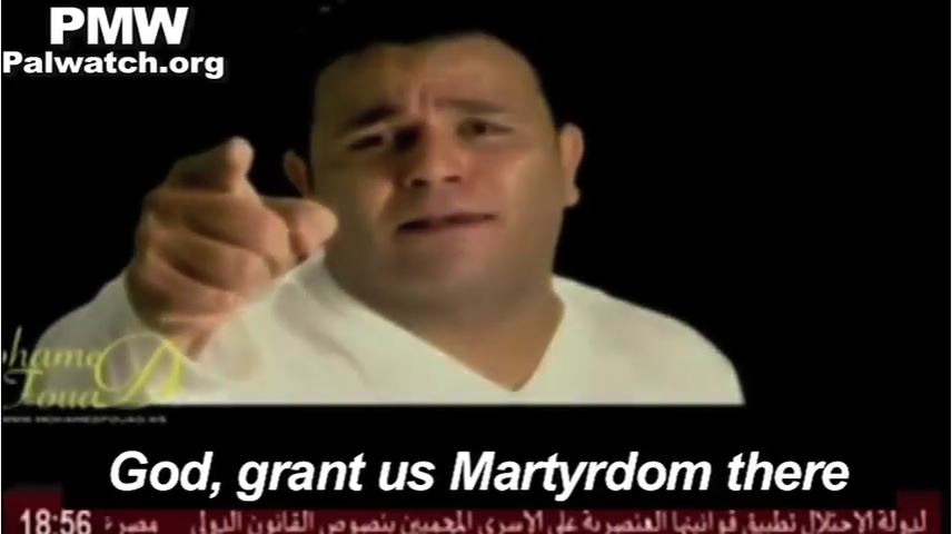 The PA’s terror promotion in response to American recognition of Jerusalem as Israel’s capital is including calls for suicide bombing. While Palestinian Media Watch has reported on the calls for rage and violence by the PA and Fatah, official PA TV has also broadcast a music video that goes beyond this: It explicitly encourages Palestinians to seek Martyrdom-death as suicide bombers.
