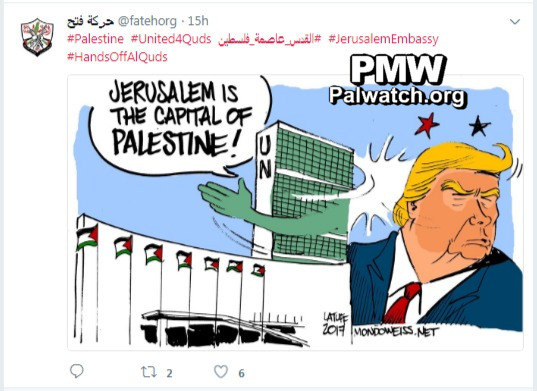 “#Palestine #United4Quds (the following hashtag is in Arabic –Ed.) #Jerusalem_capital_of_Palestine #JerusalemEmbassy #HandsOffAlQuds”