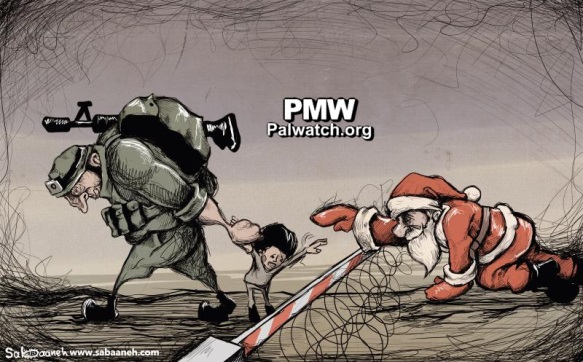 Palestinian Authority daily cartoon depicts Israeli soldier dragging a child away from Santa