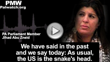 Expressing her disgust with the United States after US President Trump's decision to recognize Jerusalem as Israel's capital, PA Parliament Member Jihad Abu Zneid said on official PA radio that "America is the snake's head":