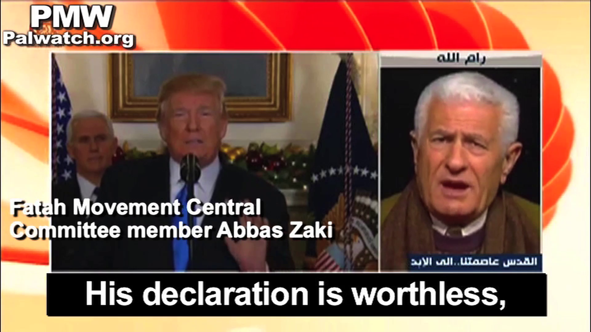 Fatah Movement Central Committee member Abbas Zaki demonized the US in the same manner when he protested against the American decision, claiming Trump has "joined terror":