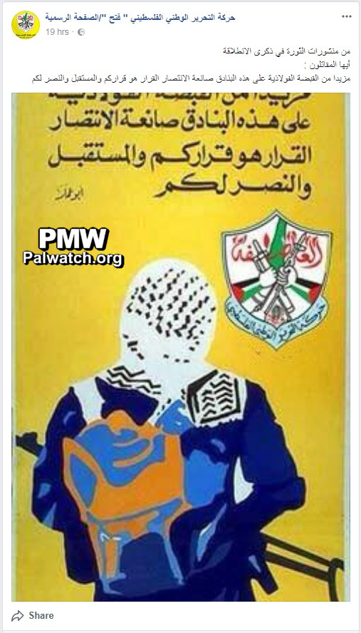 Fatah poster calls for violence: “O fighters, tighten your iron grip on the rifles that create victory”