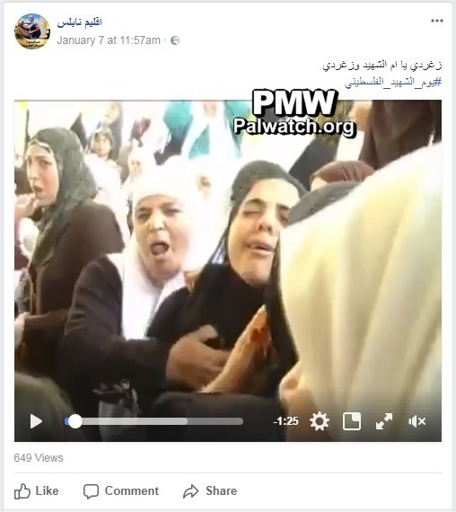 Fatah branch in Nablus posts graphic video calling on mothers of Martyrs to “let out cries of joy” at their sons’ deaths