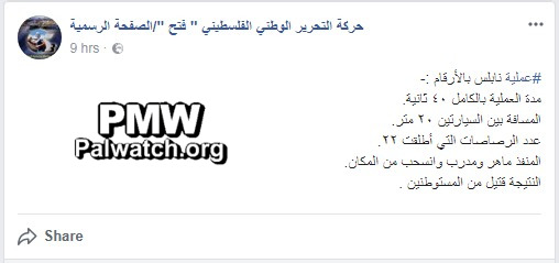 Fatah celebrates "a killed settler," glorifies drive-by murder of Israeli father of 6
