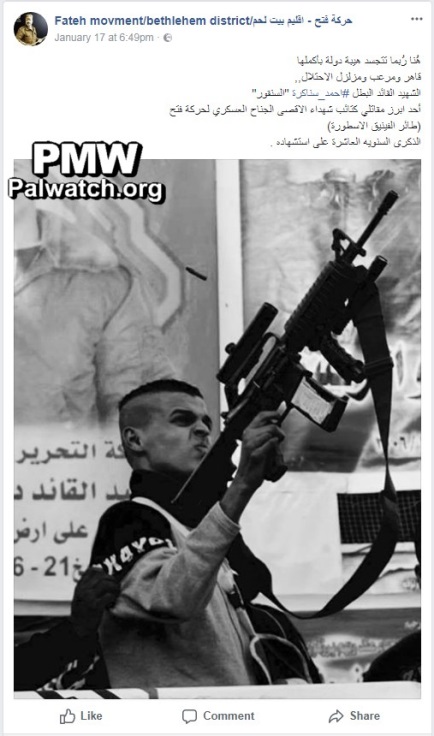 Fatah Facebook glorifies terrorist as “heroic Martyr” and “legendary phoenix”