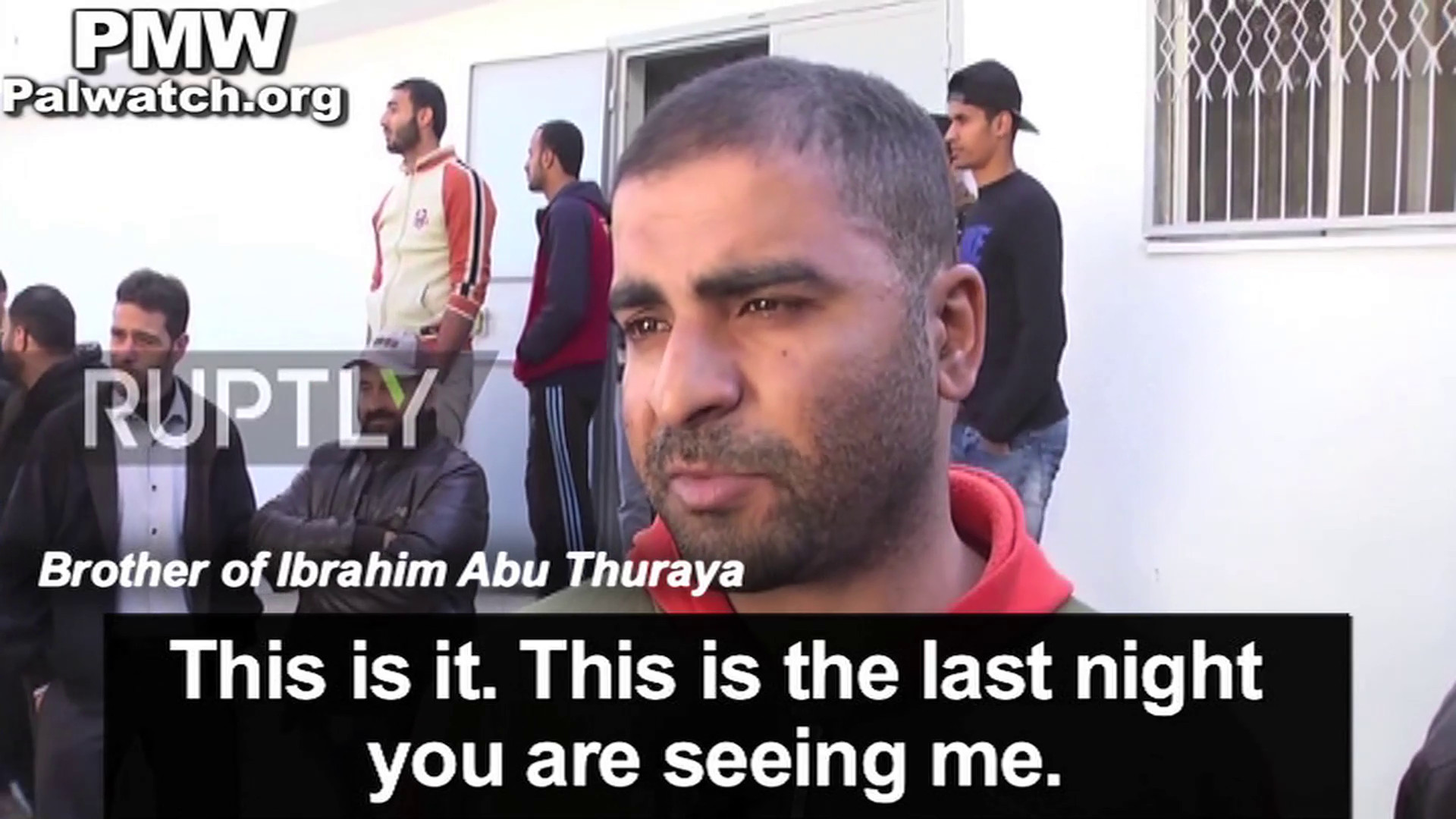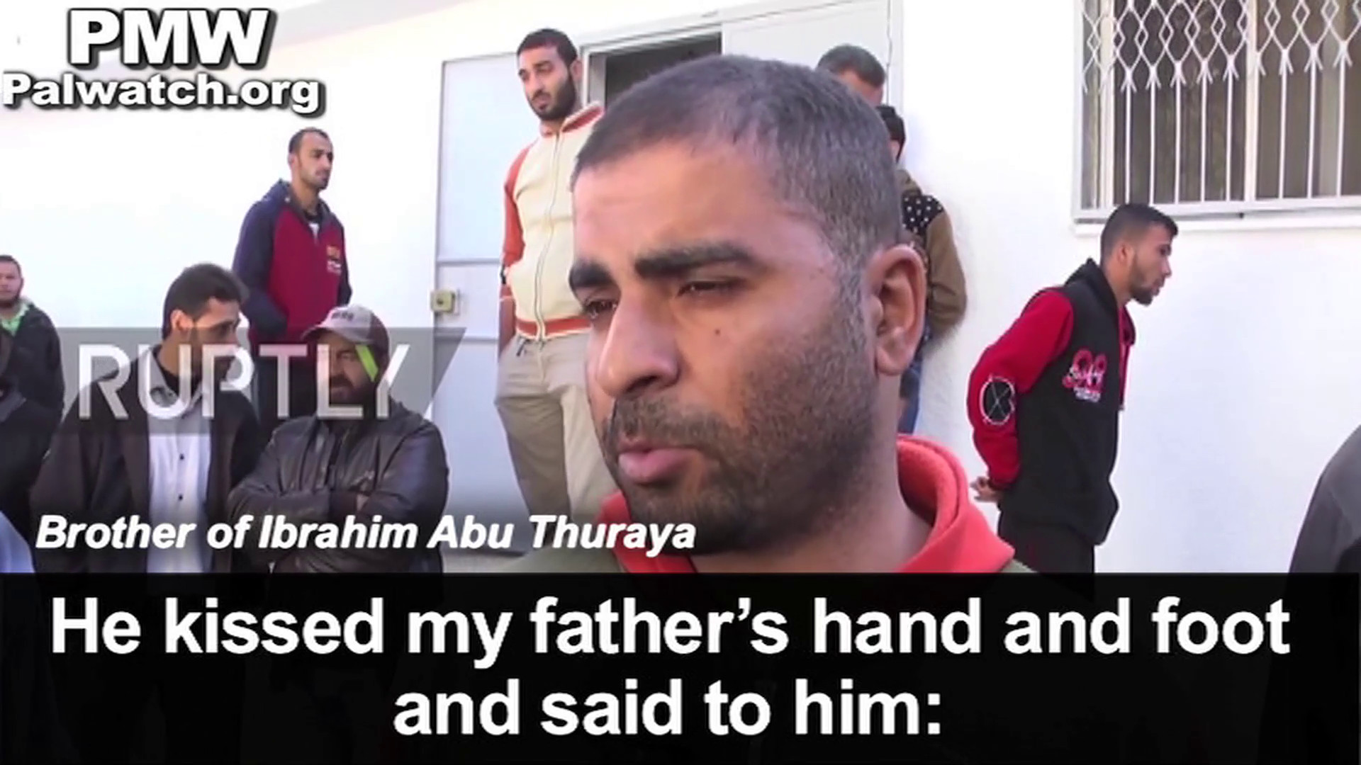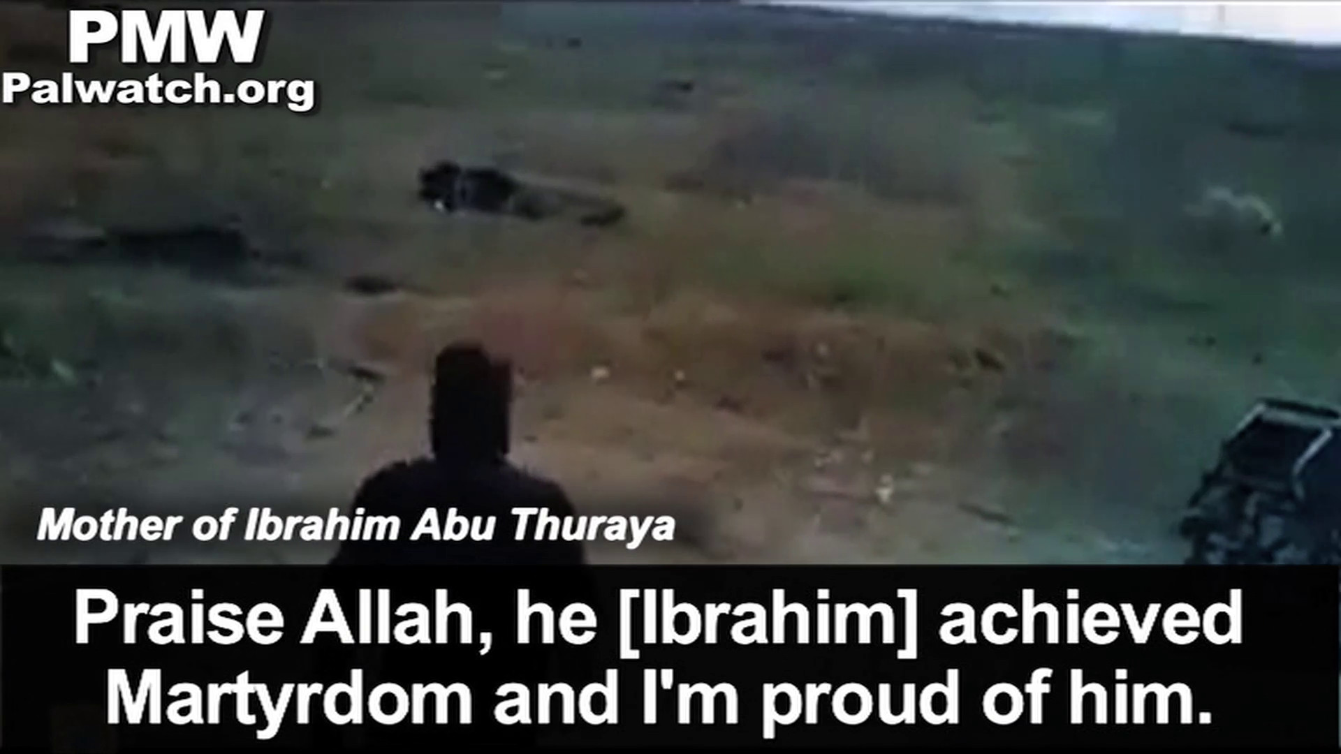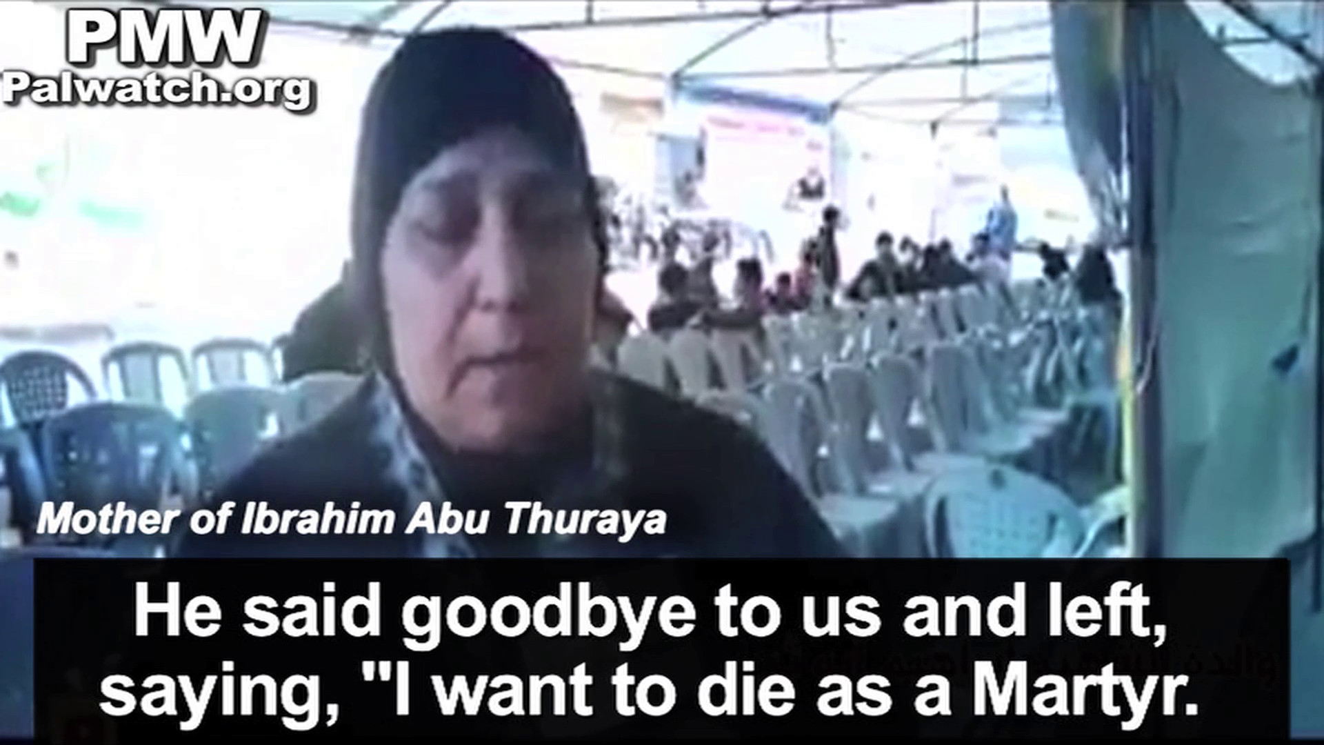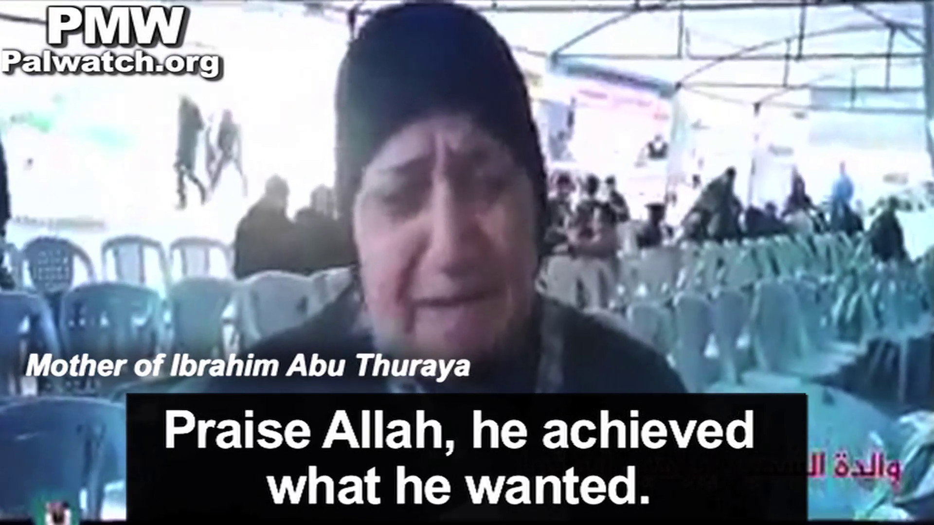 Abu Thuraya’s mother: “Praise Allah, he [Ibrahim] achieved Martyrdom and I’m proud of him. By Allah, he has made us proud. He wasn’t married. He wanted to marry, but I didn’t have the means to marry him off. He will marry dark-eyed virgins in Paradise... He said goodbye to us and left, saying, "I want to die as a Martyr. This is it, I intend to die as a Martyr, farewell. Mother, take care of yourself. You have diabetes and high blood pressure. You’re going to be the mother of a Martyr and I will pray for you up above." Praise Allah, he achieved what he wanted. He is [now] really a groom. His scent is musk.”
