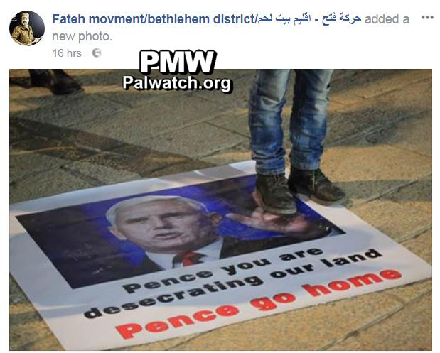 Headline: "Fatah: Pence is unwanted; we demand that the Arabs not welcome him"