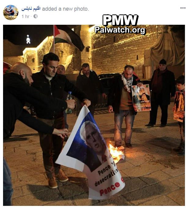 Palestinians burn posters of Pence; Fatah: “Trump’s house will be destroyed”