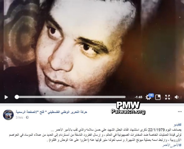 “Today is the 39th anniversary of the death as a Martyr (Shahid) of Ali Hassan Salameh