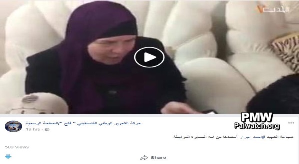 Mother of slain terrorist who killed an Israeli glorifies his death as a “Martyr:” “Allah chose him [to be] among the Martyrs, praise Allah”