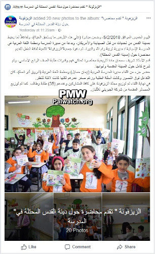 Zayzafuna is a PLO magazine for children partially funded by the PA. The magazine, which includes material written by both the magazine's staff and child readers, shows the kind of messages the publishers deem suitable for youth and also serves as a window into the minds of the Palestinian children submitting material to the magazine. Zayzafuna's website no longer exists but stated (in May 2016) that the magazine's advisory board is comprised of PA officials and educators, including Jihad Zakarneh, PA Deputy Minister of Education, and Abd Al-Hakim Abu Jamous, Head of the Media Department at the PA Ministry of Education. Zayzafuna (October 2017) included a note on its third page acknowledging the PA Ministry of Culture for its financial support of the printing of the magazine. It also included a disclaimer, stating that: “The opinions and texts in the magazine do not necessarily reflect the opinions of the Zayzafuna Association.” In May 2011, the Deputy Chairman of the Zayzafuna organization Abd Al-Karim Ziyada explained on PA TV that the PA gives "a monthly payment of 10,000 shekels ($2,700) to cover the magazine's [costs]." [Official PA TV, May 9 and 13, 2011]