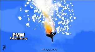 Cartoon on Fatah’s Information and Culture Commission website shows fighter jet sporting Star of David on fire and plummeting toward the earth