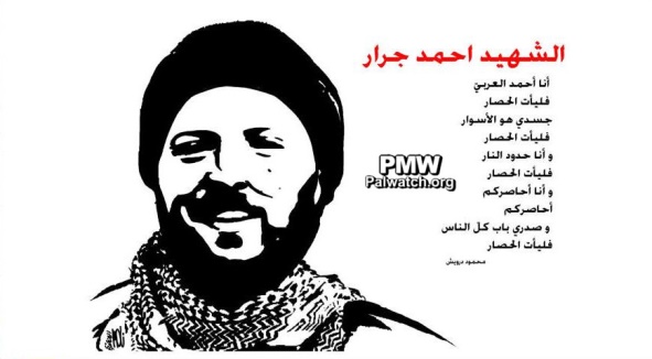 "The Table Tennis Association decided to launch the Martyr (Shahid) Ahmed Nasr Jarrar (i.e., terrorist, led murder of 1) Table Tennis Cup at the end of the month [February 2018], with the participation of 21 clubs and the sponsorship of the Amwaj sports institution...