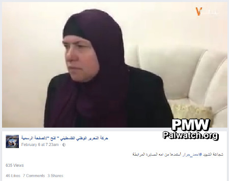 Fatah posted part of an interview with the mother of terrorist Jarrar: