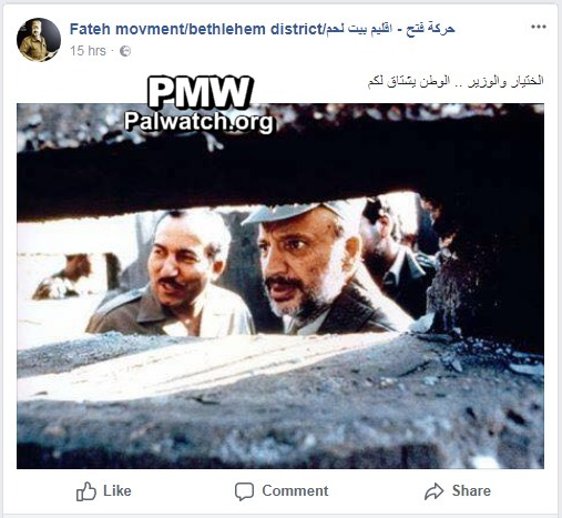 Posted text: “The Elder [Yasser Arafat] and [Khalil] Al-Wazir – the homeland misses you”