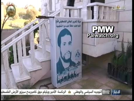 Visual: As a song praising the Palestinian terrorist prisoners is played in the background, various posters of terrorist prisoner Issa Darabi – who murdered Israeli soldier Shai Cohen – are shown on screen.