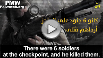 Hammad is serving 11 life sentences for these murders.Palestinian Media Watch exposed a video of similar style glorifying terrorist murderer Dalal Mughrabi who led the Coastal Road massacre in 1978 in which Palestinian terrorists murdered 12 children and 25 Israeli adult civilians. In that video, Fatah claimed that 2-year-old victims were "soldiers" to hide the fact that it murdered children.