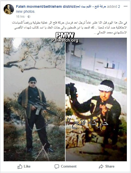 Last year, Fatah also glorified murderer Thaer Hammad.