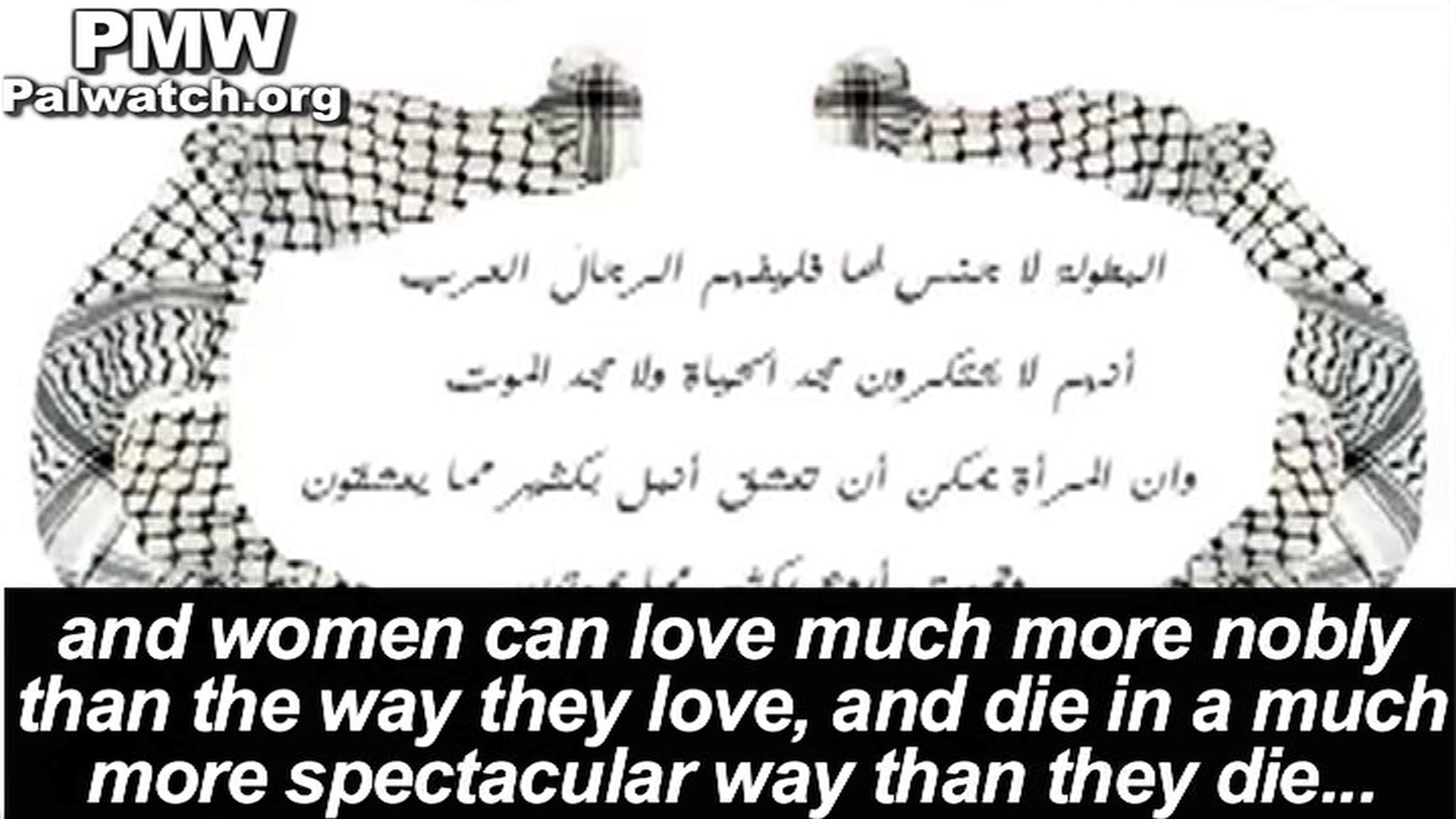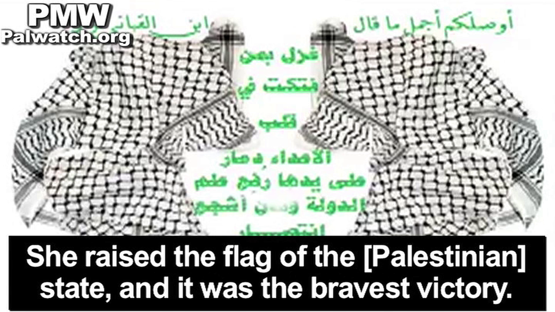 Palestinian Media Watch reported yesterday that Fatah's women's committee at the Palestinian universities - "Sisters of Dalal" - celebrated International Women's Day by giving out cards to women at An-Najah University with text praising Mughrabi and encouraging women to believe in themselves.