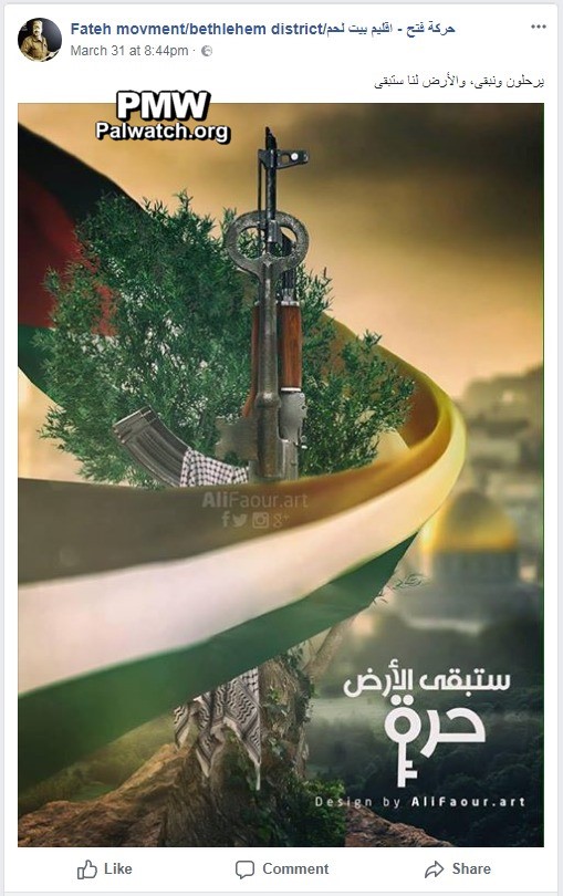 Fatah posts image of rifle with text: “They will leave and we will remain, and the land will remain ours”