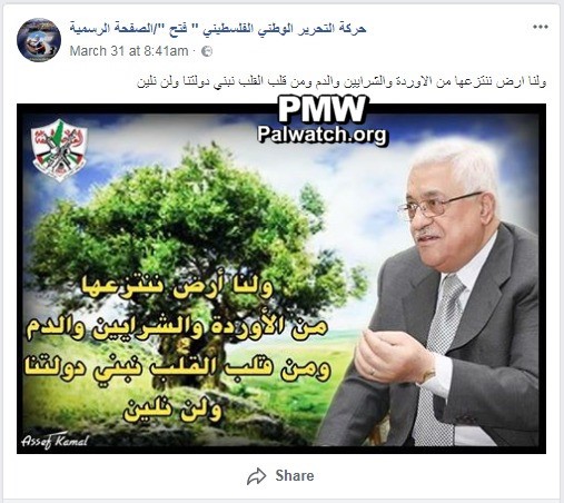 [Official Fatah Facebook page, March 31, 2018 (image only);