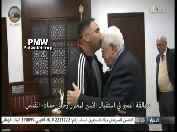 Palestinian Authority television program celebrates release of terrorist prisoner who participated in murder of 1 Israeli, with footage of Abbas embracing him