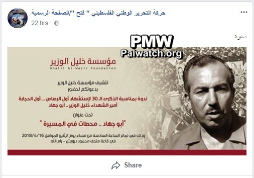 Fatah posts invitation to conference for 30th anniversary of terrorist Abu Jihad’s death