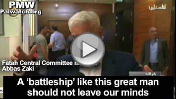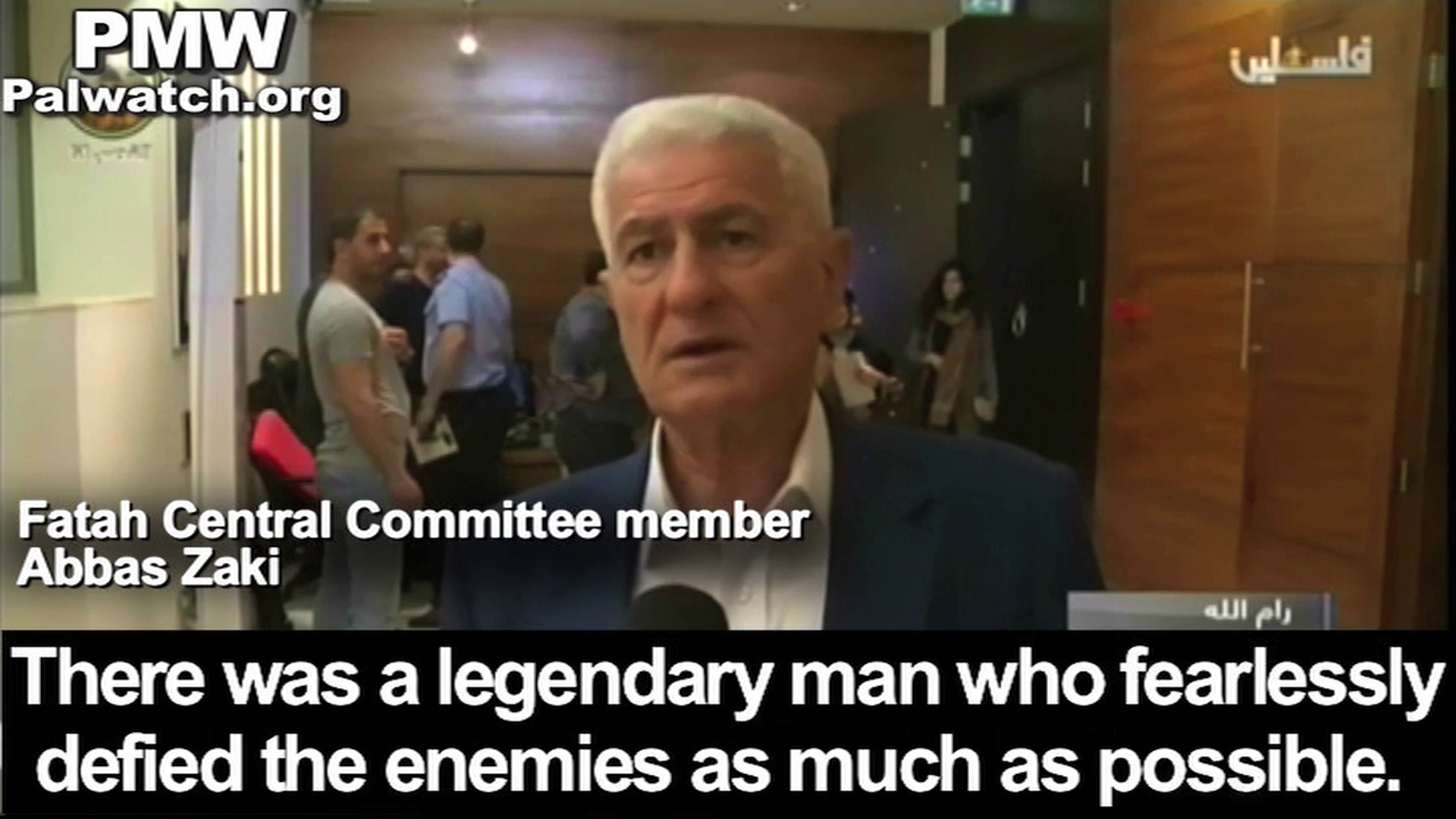 At an anniversary celebration, Fatah official Abbas Zaki portrayed the terrorist as "a battleship," "great," and "fearless":![]() |