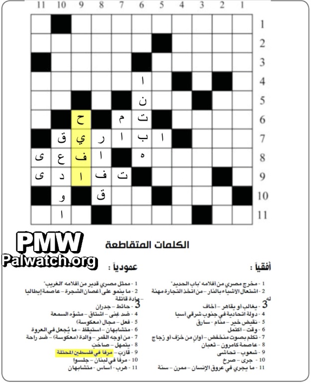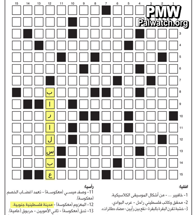 Palestinian Media Watch has documented the PA's use of crossword puzzles in the past to deny Israel's existence and right to exist:
