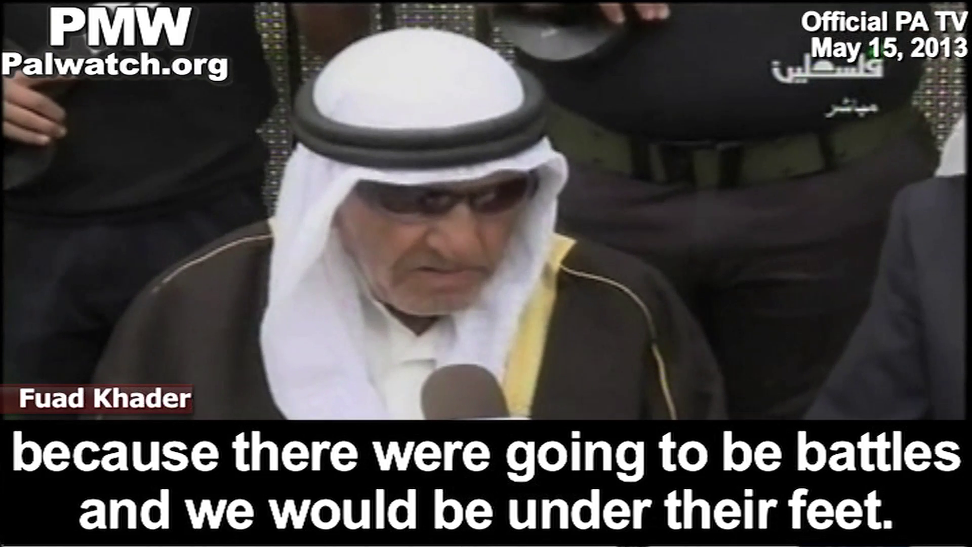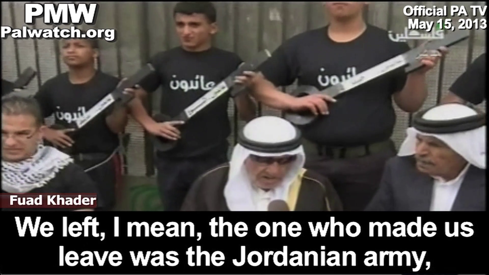 Journalist Jawad Al Bashiti (PMW narration of newspaper): "In the Palestinian Nakba, the first war between Arabs and Israel had started and the Arab Salvation Army told the Palestinians: 'We have come to you in order to exterminate the Zionists and their state. Leave your houses and villages, you'll return to them safely in a few days.'"
