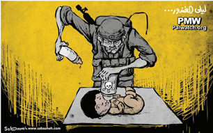 Palestinian Authority daily cartoon depicts Israeli soldier poisoning a Palestinian baby