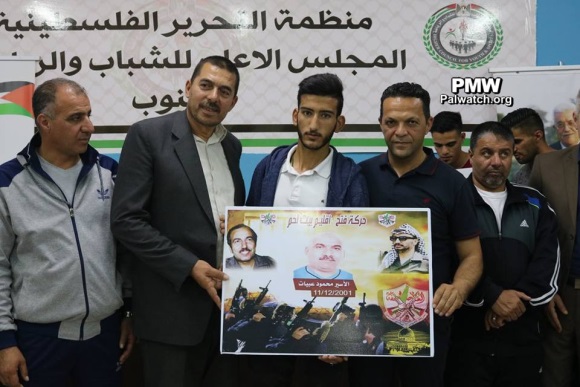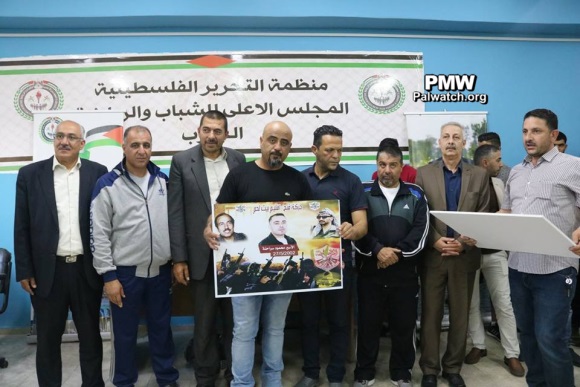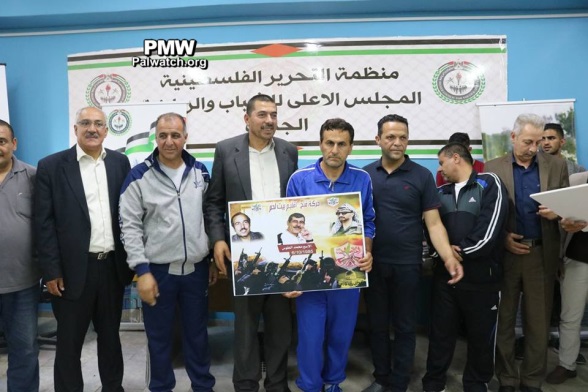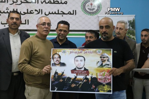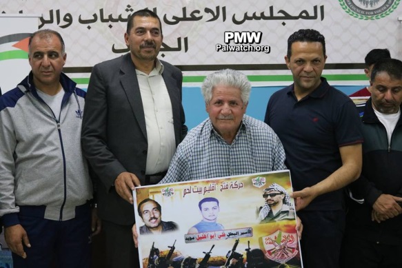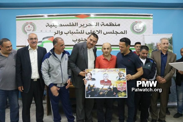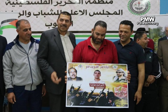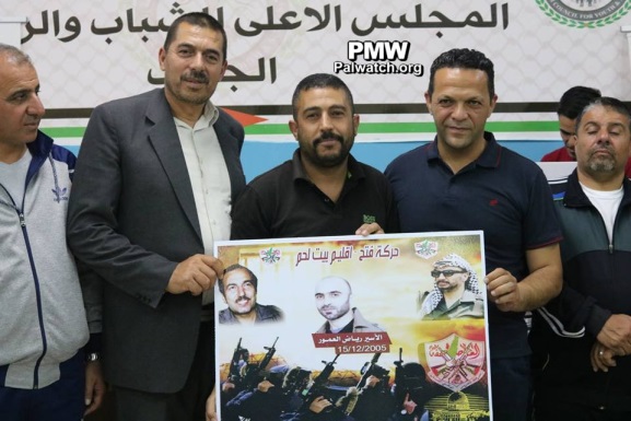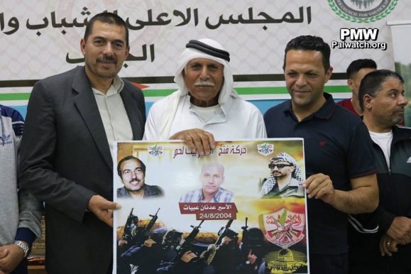 At this tournament, in addition to glorifying arch-terrorist Abu Jihad, Fatah also glorified other terrorists and murderers from the Bethlehem district who are serving numerous life sentences for murdering over 100 people. The terrorists' families were invited to a ceremony and given honorary posters with pictures of their imprisoned terrorist relatives. The terrorist prisoners who were honored by Fatah at the Abu Jihad Championship in the Bethlehem district included: