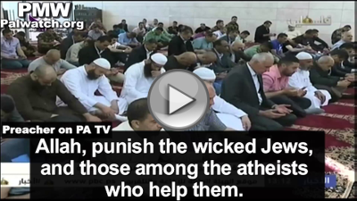 The same preacher asked Allah to "punish the wicked Jews" and prayed for their genocide in another sermon, which was broadcast by official PA TV in 2016 and exposed by Palestinian Media Watch: Preacher on PA TV: "Allah, punish Your enemies, the enemies of religion, count their numbers and kill them to the last one, and bring them a black day. Allah, punish the wicked Jews, and those among the atheists who help them. Allah, we ask that You bestow upon us respect and honor by enabling us to repel them, and we ask You to save us from their evil."