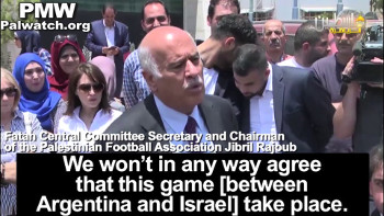 But Rajoub has a much longer record of politicizing sports, as Palestinian Media Watch has documented in numerous reports, including the Rajoub File. PMW sent this report to FIFA to show that Rajoub: Promotes hatred, glorifies terror, and incites murder; prohibits the use of sports as a vehicle for peacebuilding; and tried to use FIFA to achieve his anti-Israel agenda.