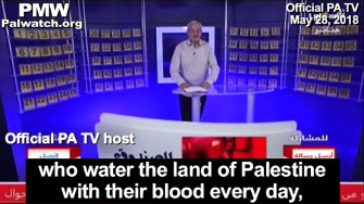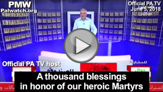 In a game show to entertain Palestinians during Ramadan, the Palestinian Authority TV host glorified the Palestinian ideal of Martyrdom-death. Welcoming viewers to The Box, the host opened at least twice with praise for the "heroic Martyrs," emphasizing that they "water the land of Palestine with their blood":