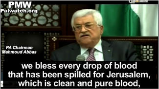 In 2015, PA Chairman Abbas himself stated that the PA "blessed every drop of blood spilled for Jerusalem," and promised that "every Martyr will reach Paradise." This statement together with the claim that Jerusalem was in need of protection from the Jews and "their filthy feet" was later seen as marking the onset of the wave of terror attacks that started in September 2015: