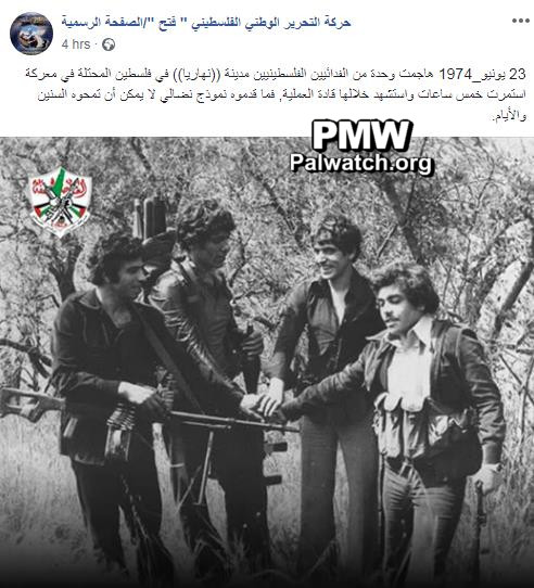Fatah Facebook glorifies terrorists from 1974 Nahariya attack: “A model of struggle that the years and days are unable to erase”