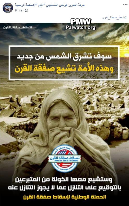 Official Fatah Facebook page posts image which includes a crossed-out American flag, from the so-called “National Campaign to Thwart the Deal of the Century”