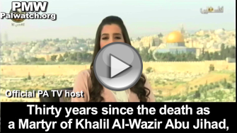 When Palestinians marked the anniversary earlier this year of the death of arch-terrorist Abu Jihad who was responsible for the murder of at least 125 Israelis, a PA TV host quoted the terrorist, encouraging death for "Palestine": | |