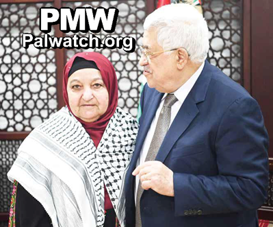 Just one month prior to Islam Abu Hmeid’s attack, PA Chairman Abbas hosted the murderer’s mother, Latifa Abu Hmeid, who is also known as "Khansa of Palestine," - a name that refers to the woman Al-Khansa from early Islam, who sent her four sons to battle and rejoiced when they all died as Martyrs.