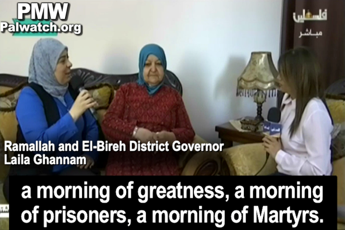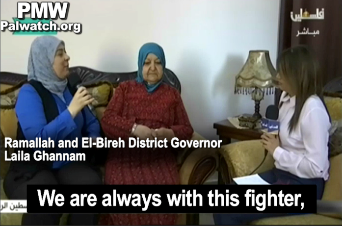 Abu Hmeid also received specific praise from Ramallah District Governor Laila Ghannam and official PA TV. PA official Ghannam posted pictures of herself and Abu Hmeid visiting released terrorists.