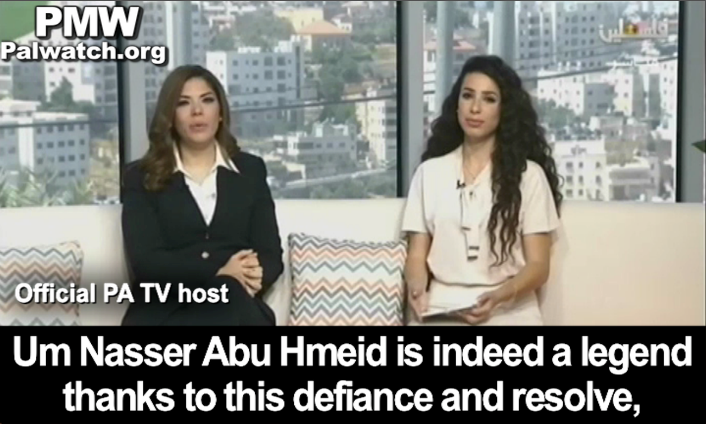 Official PA TV host: “Um Nasser Abu Hmeid is indeed a legend thanks to this defiance and resolve, and therefore she has been nicknamed the Khansa of Palestine. She is a role model for every Palestinian woman.”
