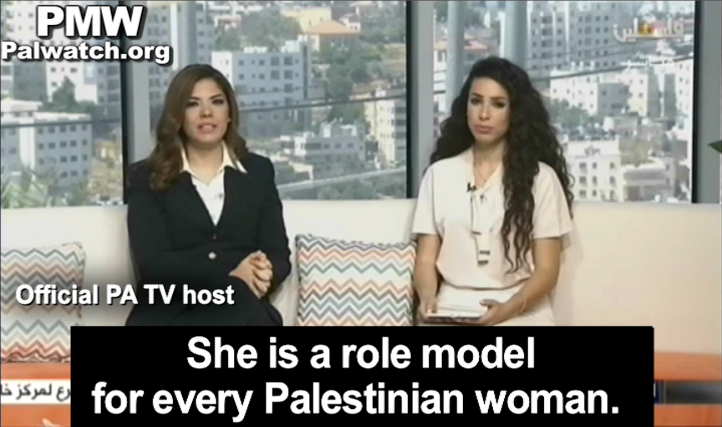 PA TV’s reporter also praised Abu Hmeid, saying “she is a role model for every Palestinian woman”: