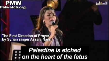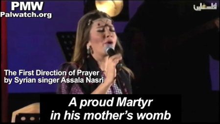 Pregnant mothers all over the world are busy imagining the future of their unborn child and wishing him/her the best. The Palestinian Authority is promoting a song lately in which mothers are taught to see their unborn fetus as a future “Martyr for Palestine.” The song has been broadcast on official PA radio, Fatah’s Awdah TV, and now official PA TV.