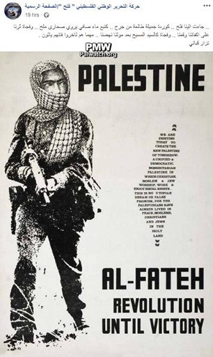 Fatah poster displays armed fighter with map of Palestine that erases Israel