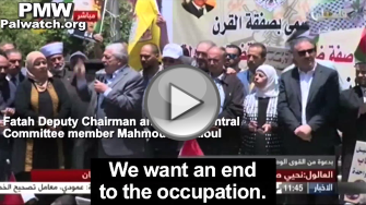 Al-Aloul made his statement during a speech at a Fatah demonstration in support of PA and Fatah Chairman Mahmoud Abbas and against US President Trump's "deal of the century" in the presence of other Fatah leaders. To his right is Archimandrite Abdallah Giulio and District Governor of Ramallah and El-Bireh Laila Ghannam, and to his left is Fatah Central Committee member Jamal Muhaisen, PLO Executive Committee member and Secretary-General of the Palestinian Liberation Front Wasel Abu Yusuf, Fatah Central Committee member and Fatah Commissioner of NGOs Dalal Salameh, and General Supervisor of the PA Official Media Ahmad Assaf.