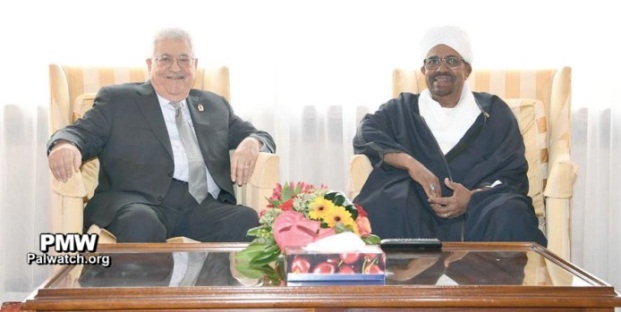 The article includes a picture of PA Chairman Mahmoud Abbas sitting and laughing with Sudanese President Omar Al-Bashir.