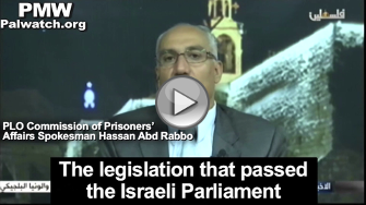 Before the law passed, official PA Government Spokesman Yusuf Al-Mahmoud used almost the exact same words, vowing that the PA will never “abandon” the prisoners because they sacrificed for the Palestinian people and “all of humanity”: